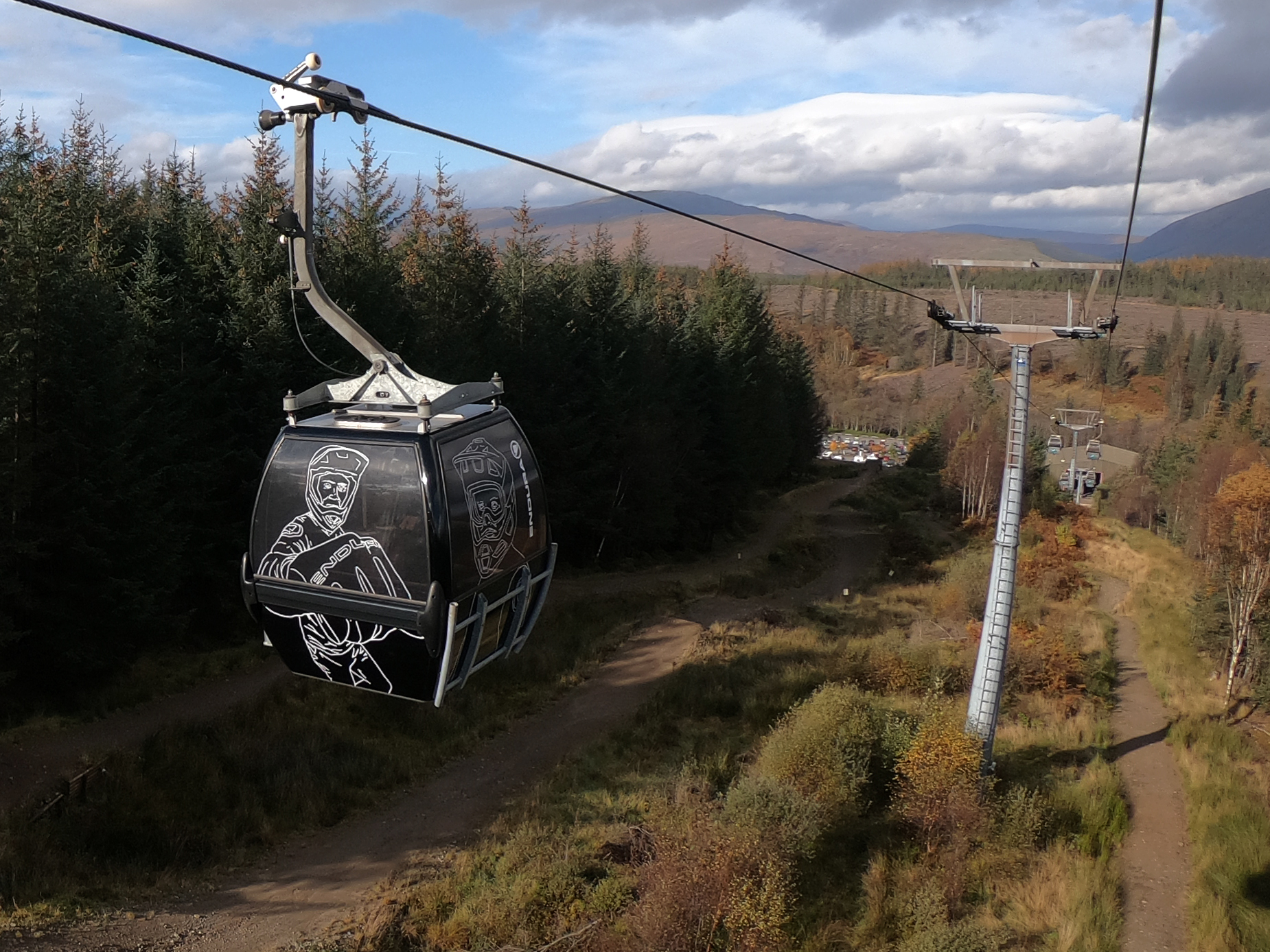 The Nevis Range Mountain Gondola, unique in Britain, was originally constructed to transport skiers and snowboarders to the slopes. Today, the gondola whisks some 200,000 visitors each year to 650m where they can eat at the Snowgoose restaurant, enjoy a drink at the bar, walk out to the mountain viewpoints, or simply enjoy the stunning highland scenery. The gondola is also widely used by hillwalkers, climbers, paragliders and hang gliders on their journey to the clouds. There are 74 Gondolas in total and each one takes up to 6 adults.